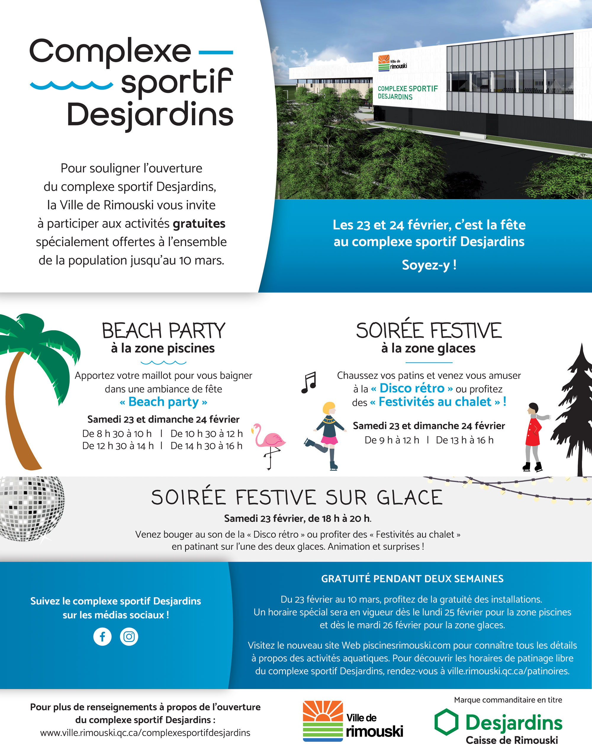 En février 2019, la Ville de Rimouski inaugure son tout nouveau complexe sportif et la population est conviée à une grande ouverture officielle.