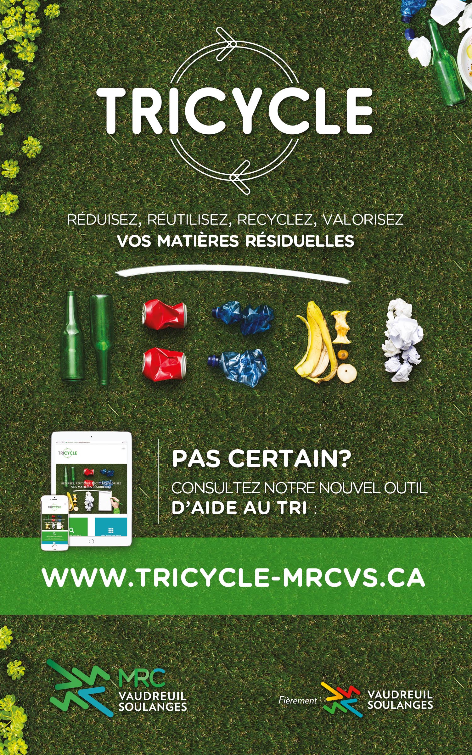 En 2018, la MRC de Vaudreuil-Soulanges s’apprête à implanter la collecte des résidus alimentaires sur son territoire. Elle souhaite donc créer un outil Web pour que les 150 000 citoyens qu’elle dessert puissent trouver en tout temps réponse à leur question.