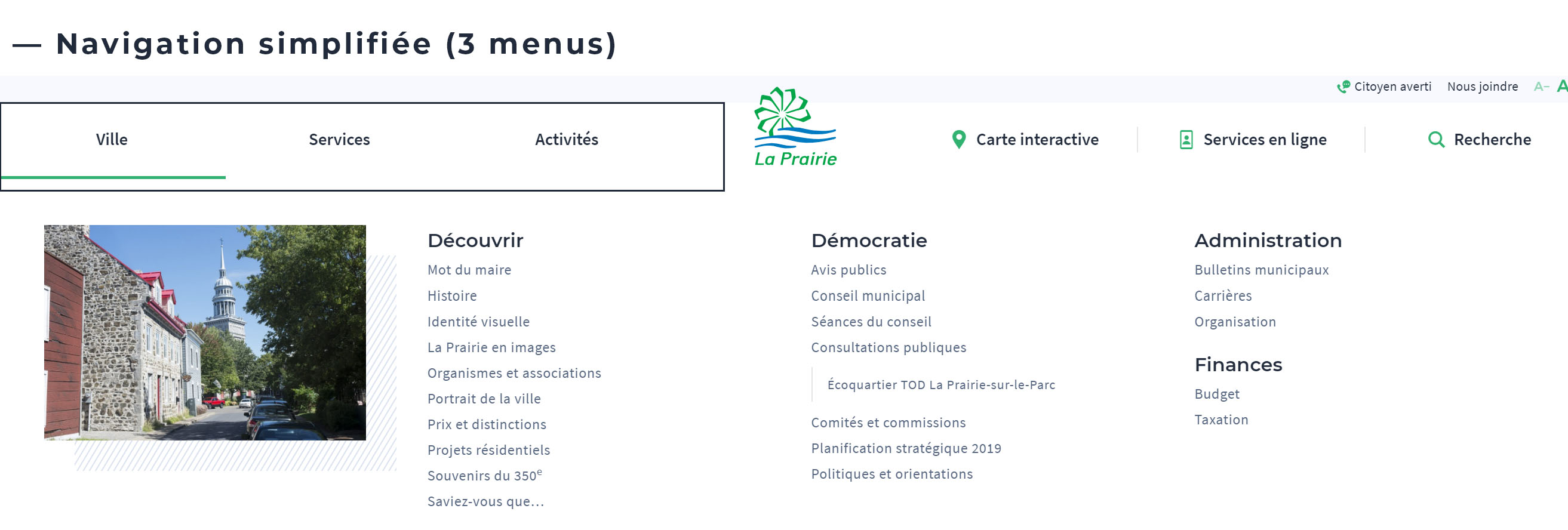 Le site Internet de la Ville de La Prairie est désuet : l’architecture de navigation est complexe, le référencement médiocre, les propriétés sont limitées et le design dépassé.